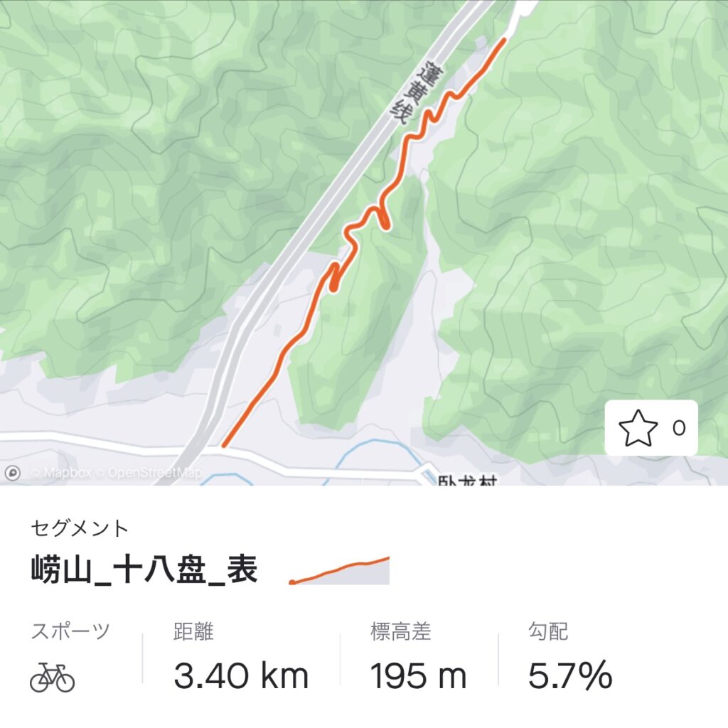 エベレスティングを実行する場所は、青島の有名な山である崂山にある十八盘という峠道。セグメントスタート地点には広い路肩があり、果物売りのおじさんなどが並びます。